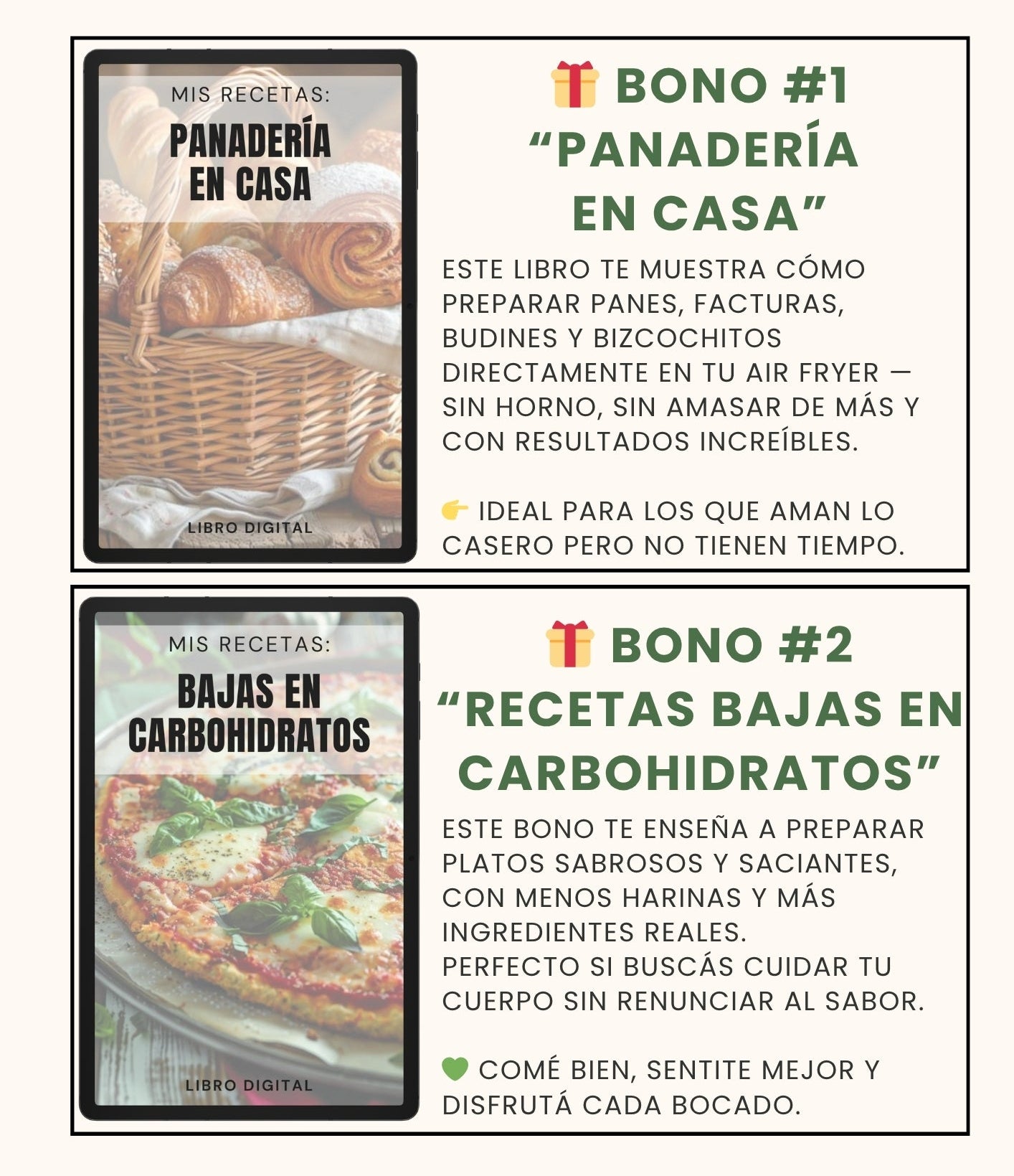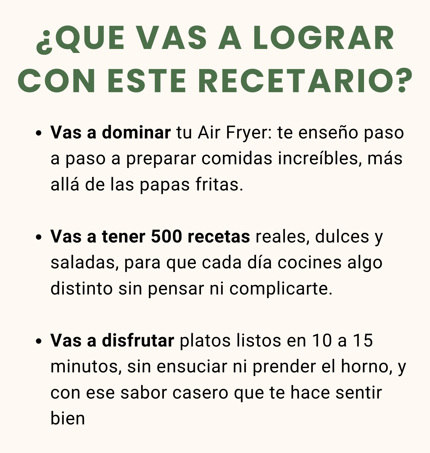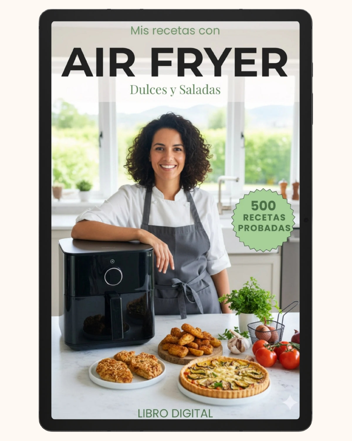 Estás comprando acceso instantáneo al recetario digital “Airfryer Go”, con más de 500 recetas dulces y saladas especialmente pensadas para sacarle el 100 % a tu freidora.